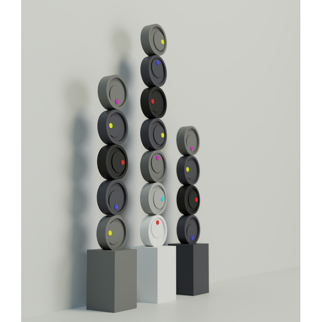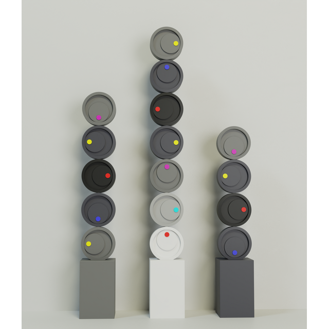 "У пошуках задоволення (монохром 3.0)" є частиною серії Метастази, де геометричний порядок кидає виклик органічному розширенню. Тисячі дерев'яних елементів формують структуру, що розповсюджується, зміщується або мутує по поверхні, створюючи візуальне поле між зростанням і викривленням. Робота відображає те, як форми — подібно до ідей, спогадів чи імпульсів — можуть реплікуватися, вторгатися та змінювати простір, який вони населяють.