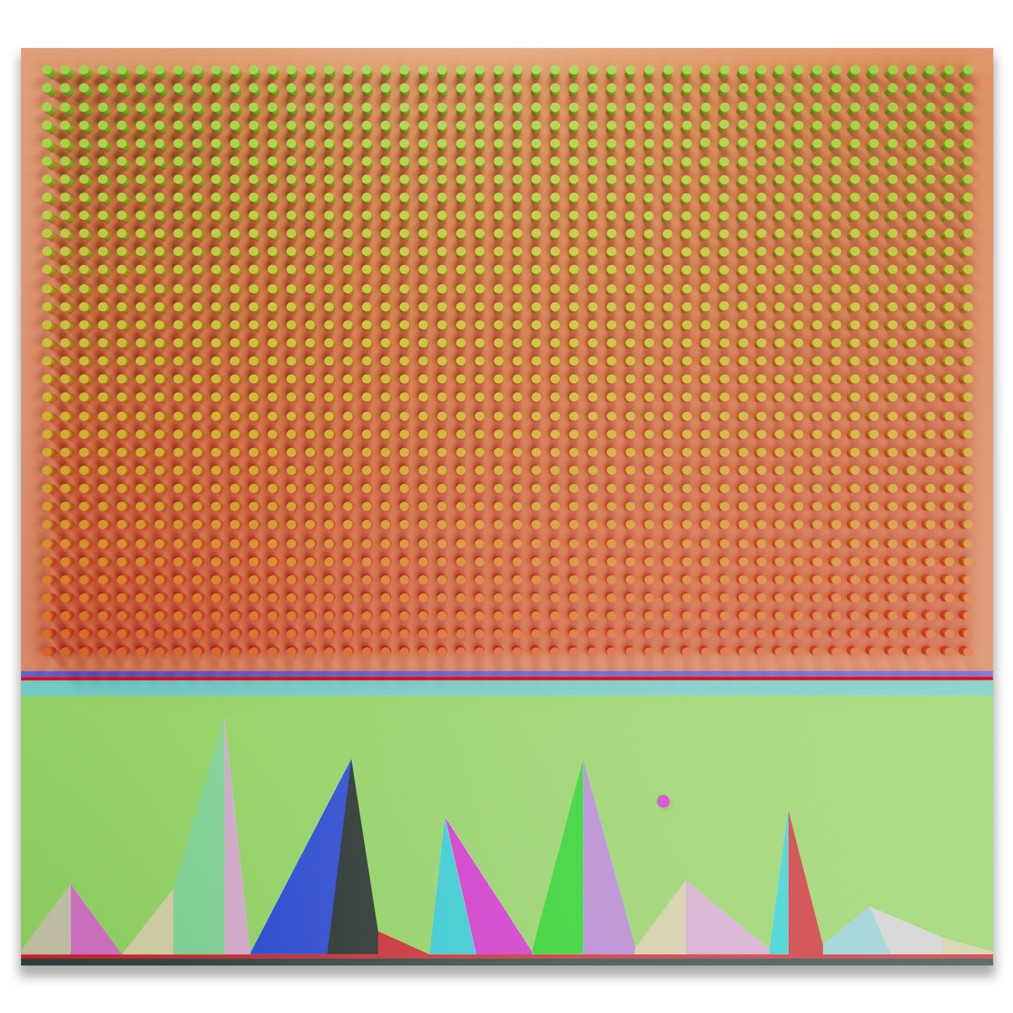Built through repetition, rhythm, and subtle variations in color and depth, the work reveals its complexity gradually. What first appears minimal becomes an accumulation of impulses, visual tension, and quiet emotional presence.