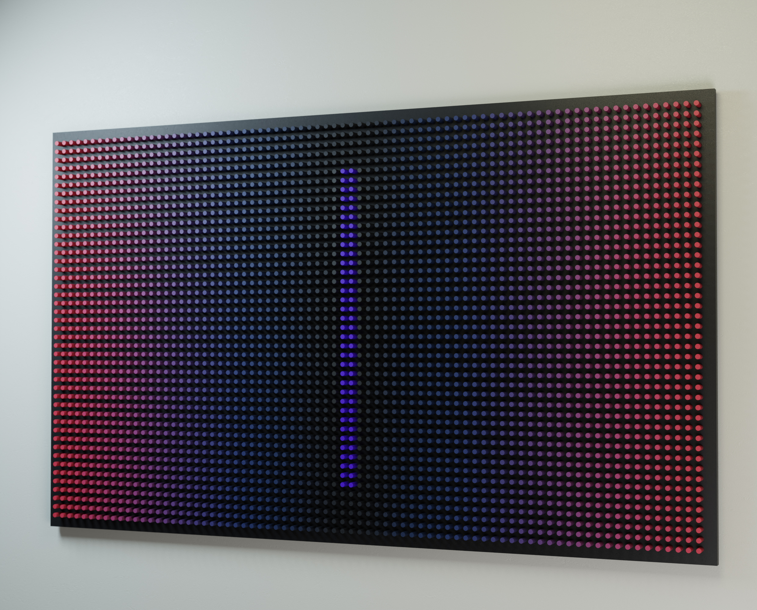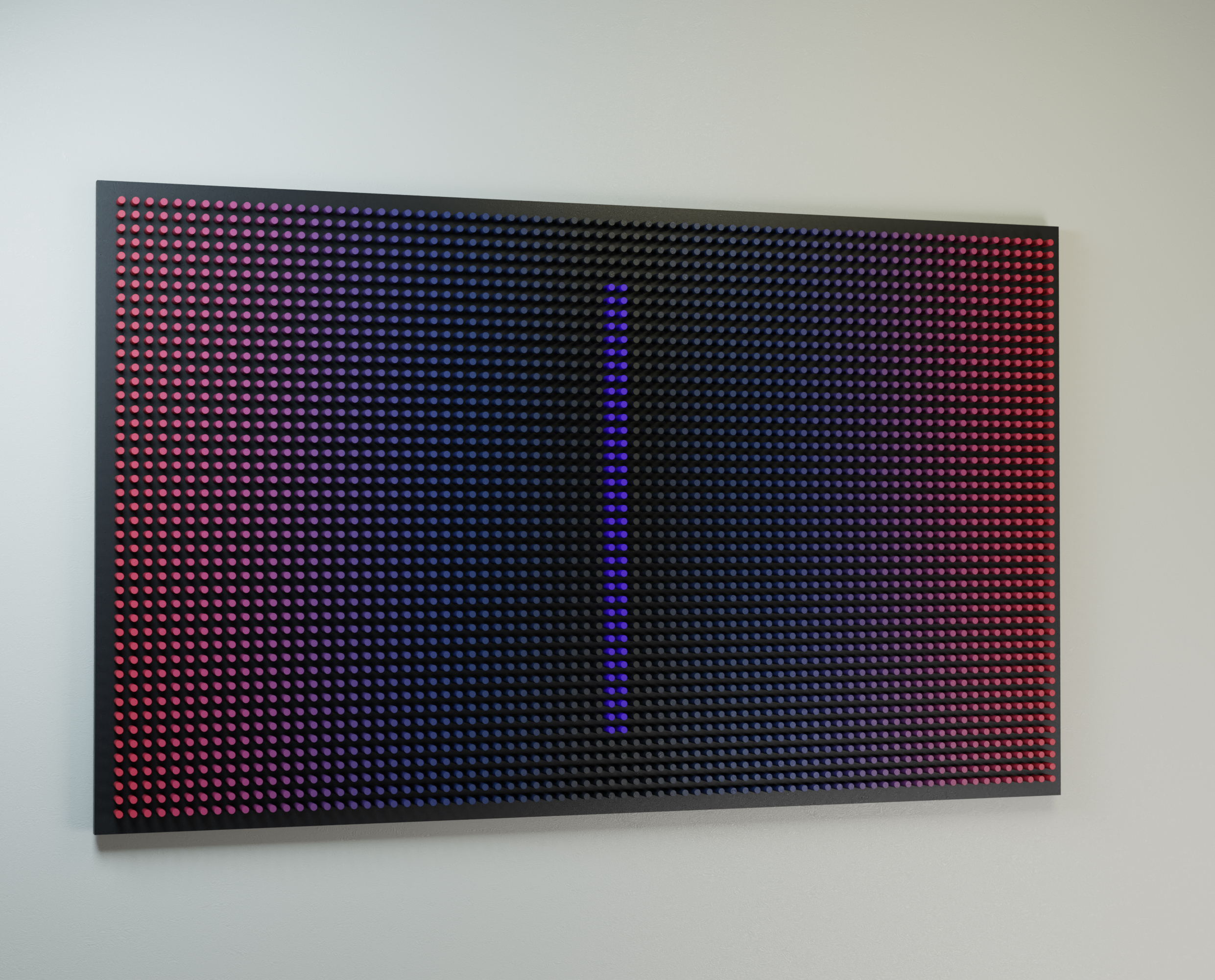 Робота досліджує, як колір, ритм і геометрична сегментація можуть створювати відчуття погляду крізь цифровий екран у глибший, тихіший внутрішній ландшафт.