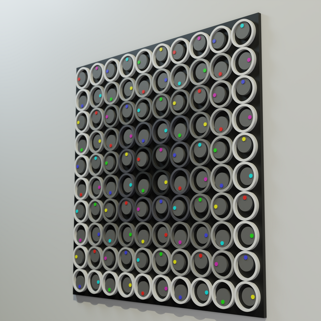 "У пошуках задоволення 4.0" є частиною серії Метастази, де геометричний порядок кидає виклик органічному розширенню. Тисячі дерев'яних елементів формують структуру, що розповсюджується, зміщується або мутує по поверхні, створюючи візуальне поле між зростанням і викривленням. Робота відображає те, як форми — подібно до ідей, спогадів чи імпульсів — можуть реплікуватися, вторгатися та змінювати простір, який вони населяють.