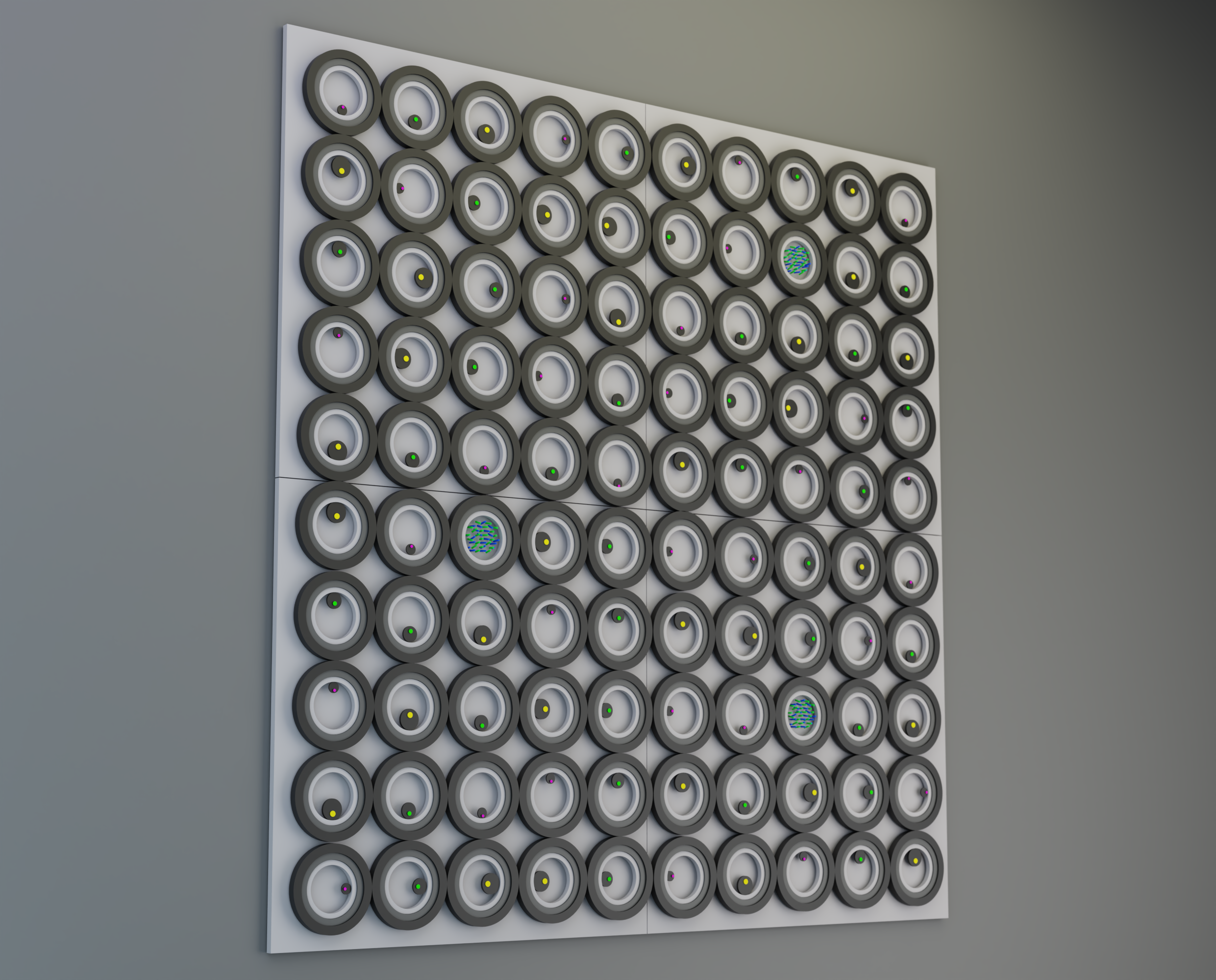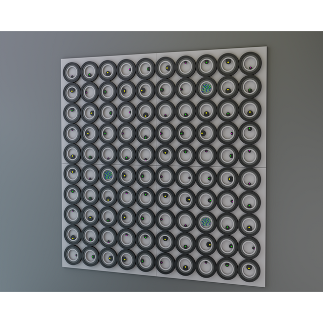 "Вітаміни 3" є частиною серії Метастази, де геометричний порядок кидає виклик органічному розширенню. Тисячі дерев'яних елементів формують структуру, що розповсюджується, зміщується або мутує по поверхні, створюючи візуальне поле між зростанням і викривленням. Робота відображає те, як форми — подібно до ідей, спогадів чи імпульсів — можуть реплікуватися, вторгатися та змінювати простір, який вони населяють.