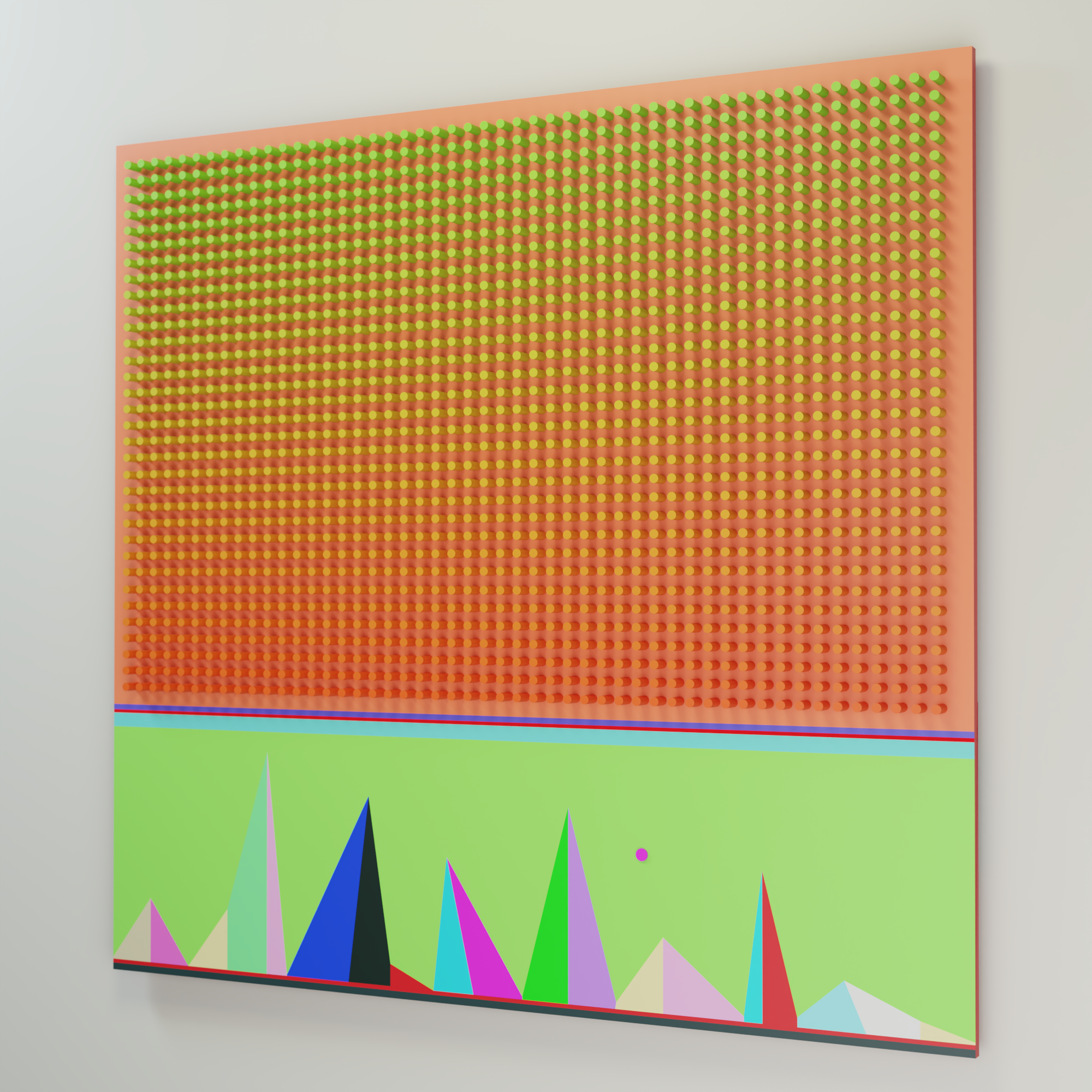 Built through repetition, rhythm, and subtle variations in color and depth, the work reveals its complexity gradually. What first appears minimal becomes an accumulation of impulses, visual tension, and quiet emotional presence.